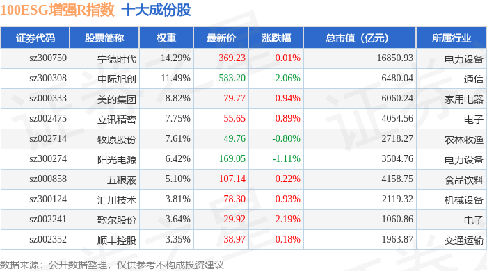 100ESG增强R(470033)指数十大成份股详情如下: