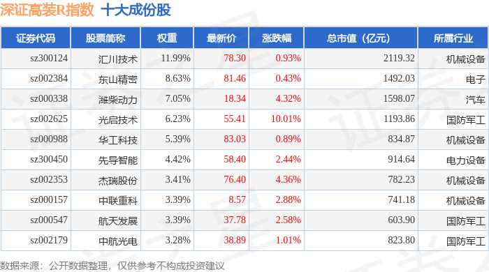 资金流向方面,深证高装R(470037)指数成份股当日主力资金净流出合计9.74亿元,游资资金净流出合计3.73亿元,散户资金净流入合计13.47亿元。成份股资金流向详情见下表: