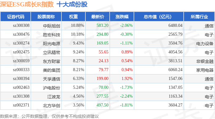 深证ESG成长R(470060)指数十大成份股详情如下: