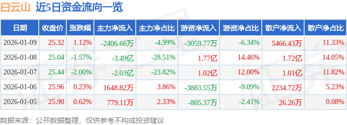 证券之星消息,截至2026年1月9日收盘,白云山(600332)报收于25.32元,上涨1.12%,换手率1.36%,成交量19.12万手,成交额4.82亿元。