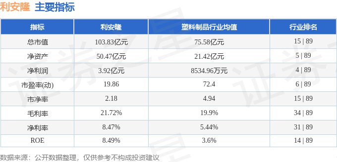 该股主要指标及行业内排名如下: