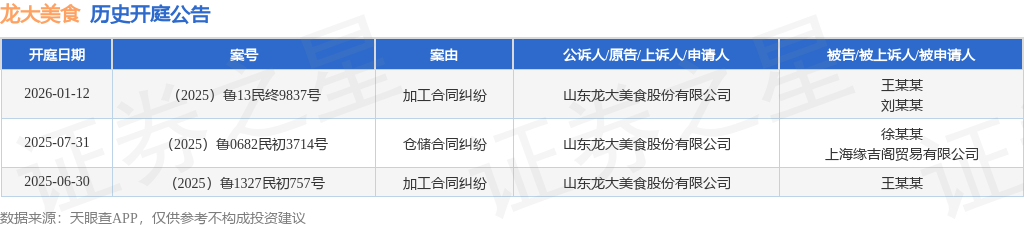 证券之星消息,根据天眼查APP显示,近日公布了一则山东龙大美食股份有限公司作为原告/上诉人的开庭公告,详细内容如下: