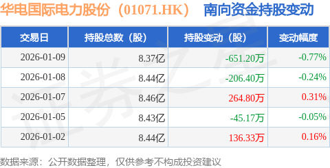 证券之星消息,1月9日南向资金减持651.2万股华电国际电力股份(01071.HK)。近5个交易日中,获南向资金减持的有3天,累计净减持501.65万股。近20个交易日中,获南向资金增持的有13天,累计净增持259.44万股。截至目前,南向资金持有华电国际电力股份(01071.HK)8.37亿股,占公司已发行普通股的48.75%。