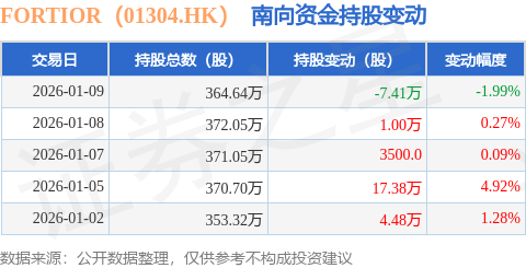 证券之星消息,1月9日南向资金减持7.41万股FORTIOR(01304.HK)。近5个交易日中,获南向资金增持的有4天,累计净增持15.8万股。近20个交易日中,获南向资金增持的有13天,累计净增持21.87万股。截至目前,南向资金持有FORTIOR(01304.HK)364.64万股,占公司已发行普通股的16.9%。