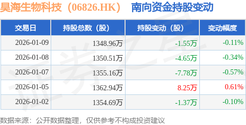 证券之星消息,1月9日南向资金减持1.55万股昊海生物科技(06826.HK)。近5个交易日中,获南向资金减持的有4天,累计净减持7.1万股。近20个交易日中,获南向资金减持的有11天,累计净减持11.85万股。截至目前,南向资金持有昊海生物科技(06826.HK)1348.96万股,占公司已发行普通股的36.94%。
