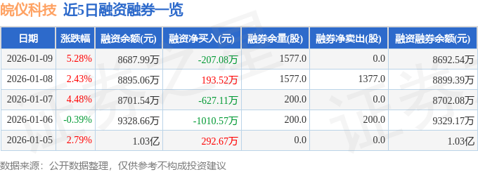 皖仪科技融资融券信息显示,融资方面,当日融资买入1015.39万元,融资偿还1222.47万元,融资净偿还207.08万元。融券方面,融券卖出0.0股,融券偿还0.0股,融券余量1577.0股,融券余额4.56万元。融资融券余额8692.54万元。