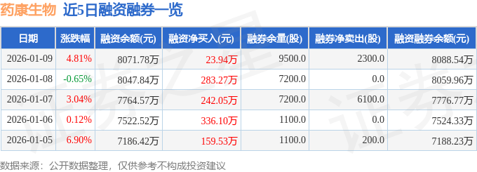 药康生物融资融券信息显示,融资方面,当日融资买入1061.02万元,融资偿还1037.08万元,融资净买入23.94万元,连续3日净买入累计549.27万元。融券方面,融券卖出2300.0股,融券偿还0.0股,融券余量9500.0股,融券余额16.76万元。融资融券余额8088.54万元。
