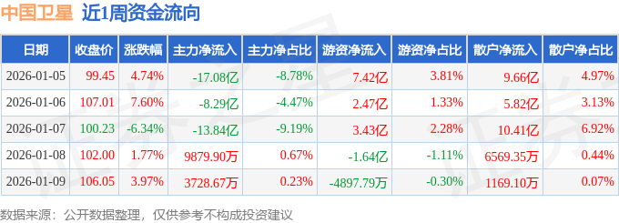 沪深股通持股方面,截止2026年1月9日收盘,中国卫星沪股通持股数为1195.46万股,占流通股比为101.0%。
