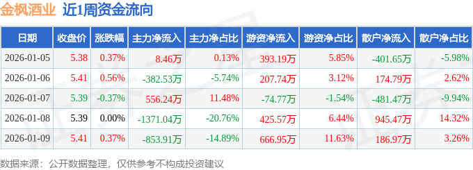资金流向数据方面,本周金枫酒业主力资金合计净流出2042.78万元,游资资金合计净流入1618.68万元,散户资金合计净流入424.11万元。本周资金流向一览见下表: