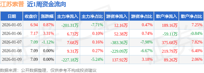 资金流向数据方面,本周江苏索普主力资金合计净流出404.77万元,游资资金合计净流出410.0万元,散户资金合计净流入814.77万元。本周资金流向一览见下表: