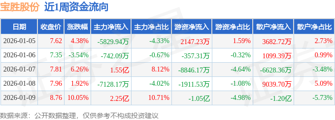 沪深股通持股方面,截止2026年1月9日收盘,宝胜股份沪股通持股数为744.47万股,占流通股比为54.0%。