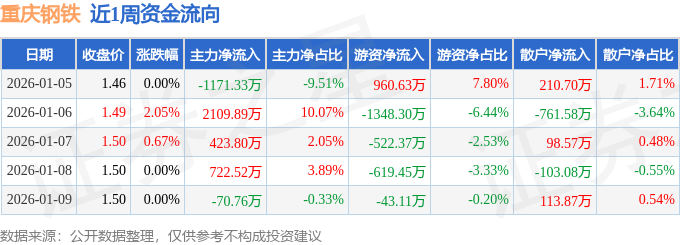 沪深股通持股方面,截止2026年1月9日收盘,重庆钢铁沪股通持股数为3086.72万股,占流通股比为37.0%。
