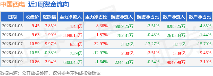 沪深股通持股方面,截止2026年1月9日收盘,中国西电沪股通持股数为2.2亿股,占流通股比为430.0%。