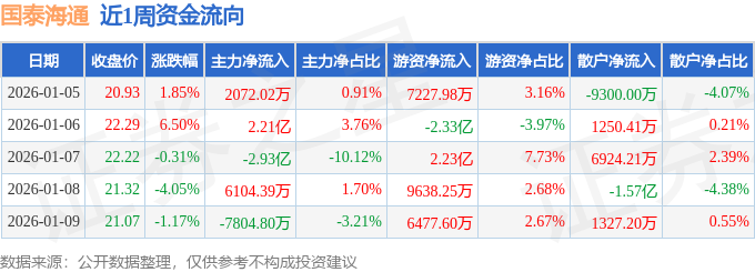 资金流向数据方面,本周国泰海通主力资金合计净流出6824.37万元,游资资金合计净流入2.24亿元,散户资金合计净流出1.55亿元。本周资金流向一览见下表: