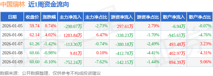 资金流向数据方面,本周中国瑞林主力资金合计净流入137.44万元,游资资金合计净流出975.73万元,散户资金合计净流入838.29万元。本周资金流向一览见下表: