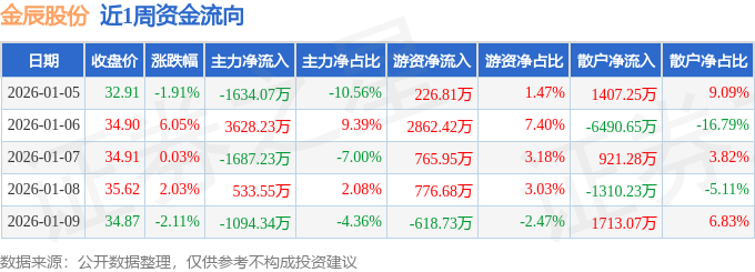 资金流向数据方面,本周金辰股份主力资金合计净流出253.85万元,游资资金合计净流入4013.13万元,散户资金合计净流出3759.28万元。本周资金流向一览见下表: