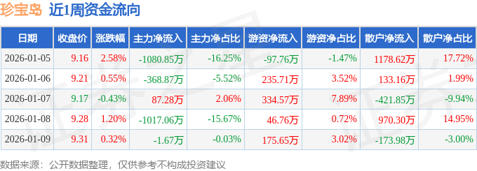 资金流向数据方面,本周珍宝岛主力资金合计净流出2381.17万元,游资资金合计净流入694.93万元,散户资金合计净流入1686.24万元。本周资金流向一览见下表: