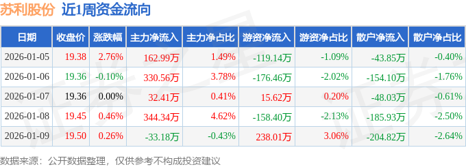 资金流向数据方面,本周苏利股份主力资金合计净流入837.12万元,游资资金合计净流出200.38万元,散户资金合计净流出636.74万元。本周资金流向一览见下表: