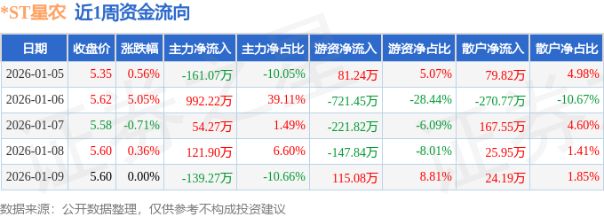 资金流向数据方面,本周*ST星农主力资金合计净流入868.05万元,游资资金合计净流出894.8万元,散户资金合计净流入26.74万元。本周资金流向一览见下表: