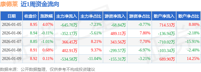 资金流向数据方面,本周康德莱主力资金合计净流出763.09万元,游资资金合计净流入308.95万元,散户资金合计净流入454.14万元。本周资金流向一览见下表:
