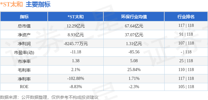 *ST太和(605081)主营业务:水环境生态建设和水环境生态维护业务,饮用水业务。 *ST太和2025年三季报显示,前三季度公司主营收入8138.66万元,同比下降14.33%;归母净利润-8245.77万元,同比下降129.19%;扣非净利润-7550.66万元,同比下降118.41%;其中2025年第三季度,公司单季度主营收入4833.58万元,同比上升143.45%;单季度归母净利润-2538.11万元,同比下降58.51%;单季度扣非净利润-2240.84万元,同比下降37.72%;负债率31.85%,投资收益-1.37万元,财务费用228.85万元,毛利率2.1%。