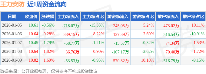 资金流向数据方面,本周王力安防主力资金合计净流出404.46万元,游资资金合计净流入820.03万元,散户资金合计净流出415.57万元。本周资金流向一览见下表: