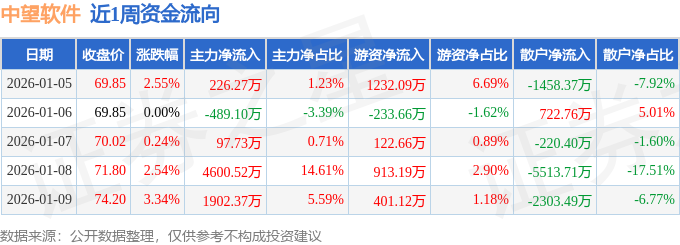 资金流向数据方面,本周中望软件主力资金合计净流入6337.8万元,游资资金合计净流入2435.41万元,散户资金合计净流出8773.21万元。本周资金流向一览见下表:
