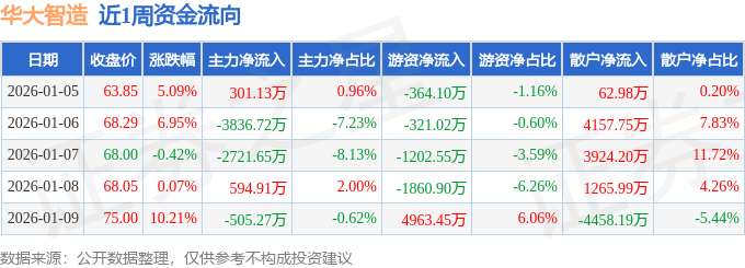 资金流向数据方面,本周华大智造主力资金合计净流出6167.61万元,游资资金合计净流入1214.88万元,散户资金合计净流入4952.72万元。本周资金流向一览见下表: