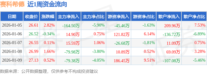 资金流向数据方面,本周赛科希德主力资金合计净流出293.36万元,游资资金合计净流入247.02万元,散户资金合计净流入46.34万元。本周资金流向一览见下表: