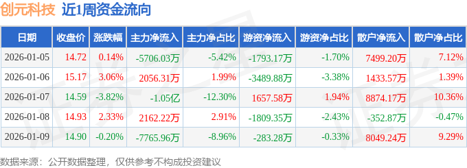 资金流向数据方面,本周创元科技主力资金合计净流出1.98亿元,游资资金合计净流出5718.1万元,散户资金合计净流入2.55亿元。本周资金流向一览见下表: