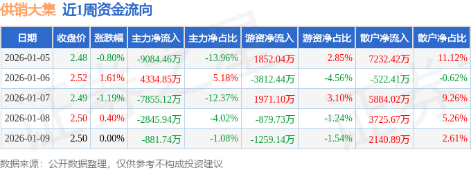 沪深股通持股方面,截止2026年1月9日收盘,供销大集深股通持股数为251.82万股,占流通股比为2.0%。