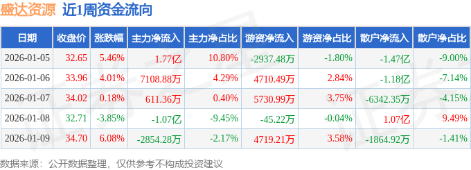 沪深股通持股方面,截止2026年1月9日收盘,盛达资源深股通持股数为2126.5万股,占流通股比为336.0%。