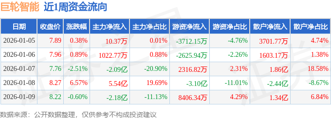 资金流向数据方面,本周巨轮智能主力资金合计净流入1.37亿元,游资资金合计净流出2.66亿元,散户资金合计净流入1.29亿元。本周资金流向一览见下表: