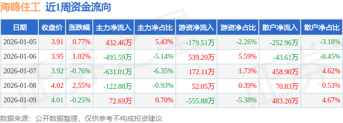 资金流向数据方面,本周海鸥住工主力资金合计净流出744.33万元,游资资金合计净流入27.98万元,散户资金合计净流入716.35万元。本周资金流向一览见下表: