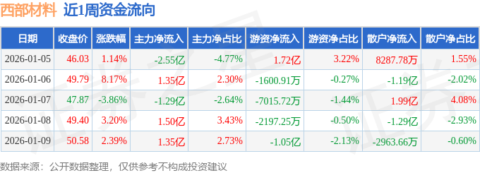 沪深股通持股方面,截止2026年1月9日收盘,西部材料深股通持股数为91.14万股,占流通股比为19.0%。