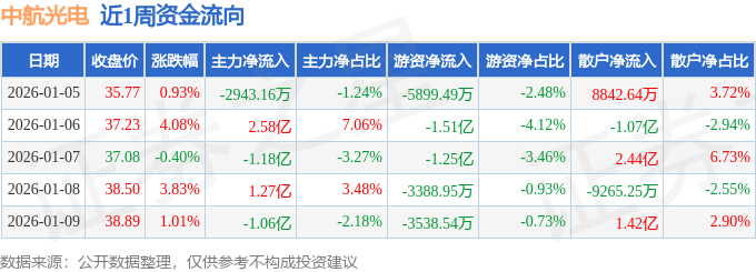 资金流向数据方面,本周中航光电主力资金合计净流入1.31亿元,游资资金合计净流出4.04亿元,散户资金合计净流入2.74亿元。本周资金流向一览见下表: