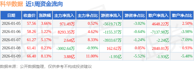 资金流向数据方面,本周科华数据主力资金合计净流入7.14亿元,游资资金合计净流出3.0亿元,散户资金合计净流出4.14亿元。本周资金流向一览见下表: