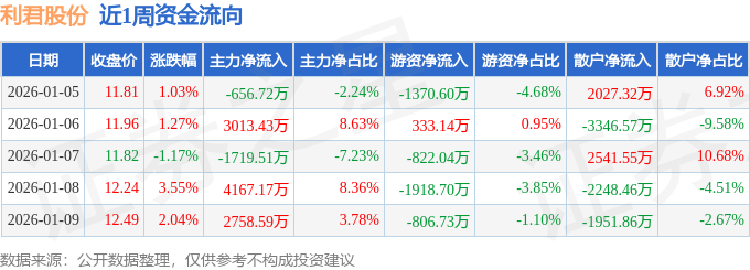 沪深股通持股方面,截止2026年1月9日收盘,利君股份深股通持股数为901.22万股,占流通股比为159.0%。