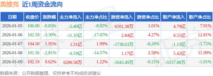 资金流向数据方面,本周英维克主力资金合计净流出21.4亿元,游资资金合计净流入4.33亿元,散户资金合计净流入17.07亿元。本周资金流向一览见下表: