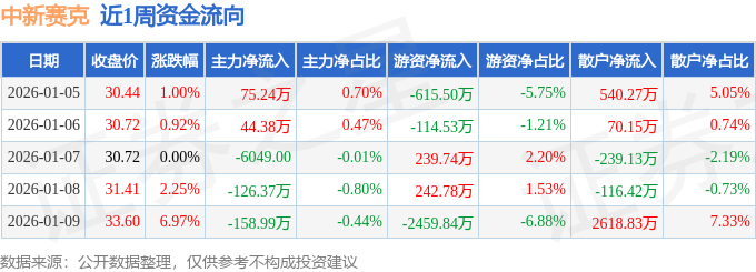 资金流向数据方面,本周中新赛克主力资金合计净流出166.34万元,游资资金合计净流出2707.35万元,散户资金合计净流入2873.69万元。本周资金流向一览见下表: