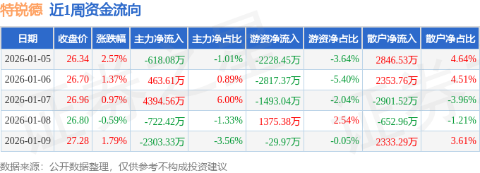 资金流向数据方面,本周特锐德主力资金合计净流入1214.34万元,游资资金合计净流出5193.44万元,散户资金合计净流入3979.1万元。本周资金流向一览见下表: