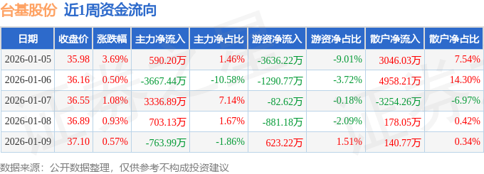资金流向数据方面,本周台基股份主力资金合计净流入198.78万元,游资资金合计净流出5267.58万元,散户资金合计净流入5068.79万元。本周资金流向一览见下表: