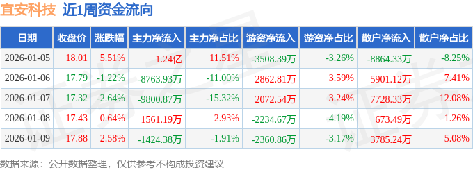 资金流向数据方面,本周宜安科技主力资金合计净流出6055.27万元,游资资金合计净流出3168.56万元,散户资金合计净流入9223.83万元。本周资金流向一览见下表: