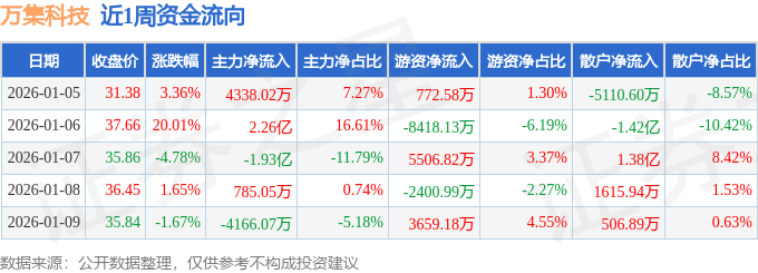 资金流向数据方面,本周万集科技主力资金合计净流入4293.21万元,游资资金合计净流出880.54万元,散户资金合计净流出3412.67万元。本周资金流向一览见下表: