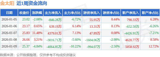资金流向数据方面,本周金太阳主力资金合计净流出2909.64万元,游资资金合计净流出2480.97万元,散户资金合计净流入5390.6万元。本周资金流向一览见下表: