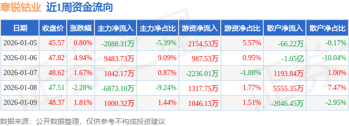 资金流向数据方面,本周寒锐钴业主力资金合计净流入2564.81万元,游资资金合计净流入3269.93万元,散户资金合计净流出5834.74万元。本周资金流向一览见下表: