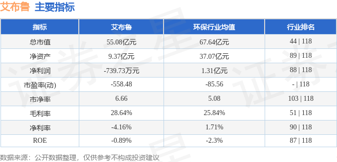 艾布鲁(301259)主营业务:在农村生活环境、生态环境和生产环境治理三大领域提供投融资、咨询设计、工程承包、装备制造及销售、药剂和修复类植物生产及销售、运营等全产业链系统服务。 艾布鲁2025年三季报显示,前三季度公司主营收入1.97亿元,同比上升74.38%;归母净利润-739.73万元,同比上升77.94%;扣非净利润-1069.37万元,同比上升69.41%;其中2025年第三季度,公司单季度主营收入4961.66万元,同比上升28.65%;单季度归母净利润150.84万元,同比上升123.73%;单季度扣非净利润-75.62万元,同比上升88.85%;负债率42.64%,投资收益218.75万元,财务费用410.78万元,毛利率28.64%。