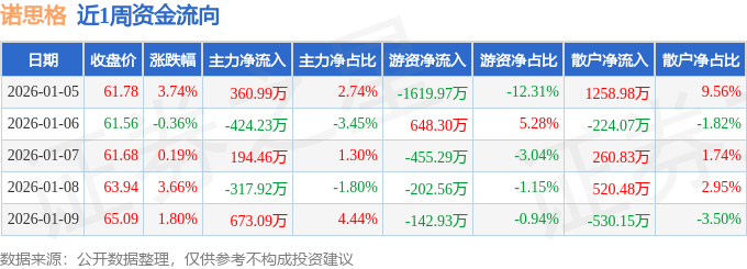 资金流向数据方面,本周诺思格主力资金合计净流入486.38万元,游资资金合计净流出1772.44万元,散户资金合计净流入1286.06万元。本周资金流向一览见下表: