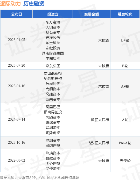 证券之星消息,根据天眼查APP于1月5日公布的信息整理,深圳逐际动力科技有限公司B+轮融资,融资额未披露,参与投资的机构包括东方富海,天创资本,基石资本,光洋股份,东土科技,宏叡投资,湖南财鑫集团,中鼎集团。