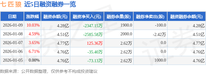 证券之星消息,截至2026年1月9日收盘,七 匹 狼(002029)报收于14.04元,上涨10.03%,涨停,换手率9.63%,成交量64.1万手,成交额8.42亿元。